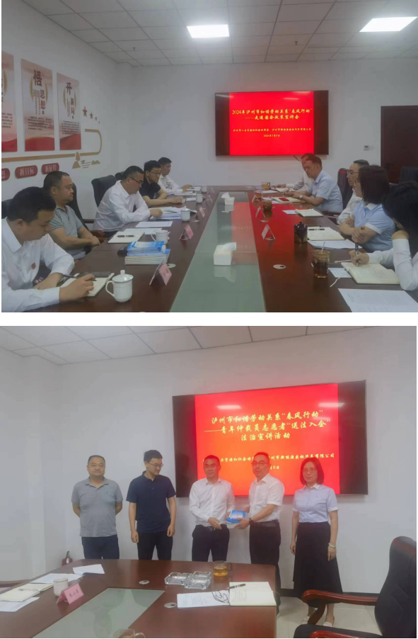 5月8日,市人社局勞動(dòng)人事?tīng)?zhēng)議仲裁院、勞動(dòng)關(guān)系科、調(diào)解仲裁科等相關(guān)負(fù)責(zé)人,前往瀘新公司開(kāi)展“送法入企”法治講講活動(dòng),并與公司相關(guān)負(fù)責(zé)人和職工代表進(jìn)行了座談交流。瀘新公司總經(jīng)理田英詳細(xì)介紹了企業(yè)經(jīng)營(yíng)狀況、規(guī)章制度、用工形式、合同簽訂等方面情況。